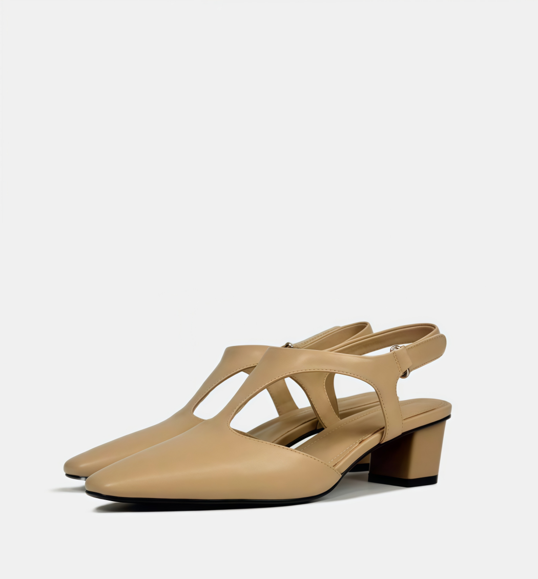 Zreo hollow-out block heel shoes